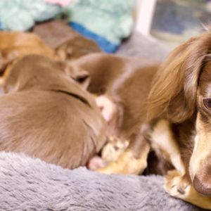 Percy is a male Dachshund. Carefully selected as a great representative of his breed, Danielle decided to make him part of their program. Danielle has passed Good Dog’s screening process, which involved a review of their breeding practices, environment, and the mental and physical health of their dogs.