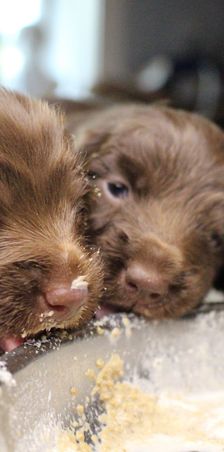 Now we eat mush! 3 weeks happy healthy puppies 🐶