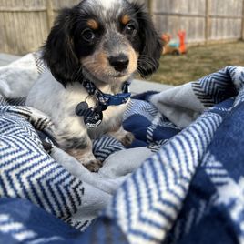 I'm Danielle K., the breeder behind The Well Tempered Dachshund located in North Reading, MA. Our dogs are members of our family and are right by our side for daily life. Our experience with them inspired us to share their affectionate personalities with other loving families!