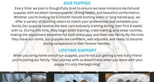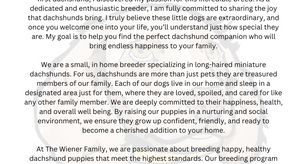 I'm Amanda S., the breeder behind The Wiener Family located in Ocala, FL. At The Wiener Family ,we are passionate about breeding happy, healthy dachshund puppies that meet the highest standards. Our breeding program focuses on extensive DNA testing and veterinary care to ensure every puppy is healthy, has a wonderful temperament, and adheres to breed standards.