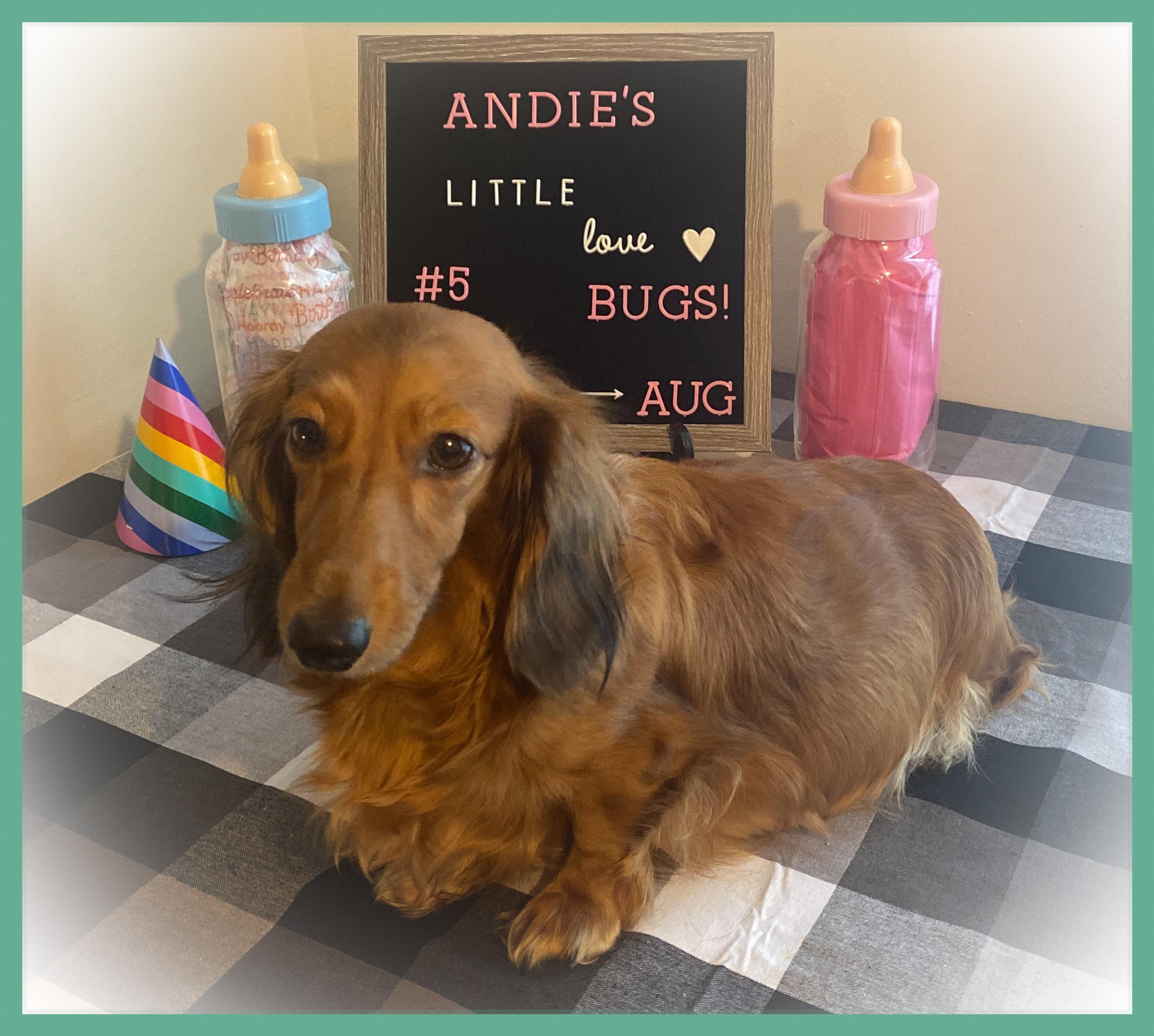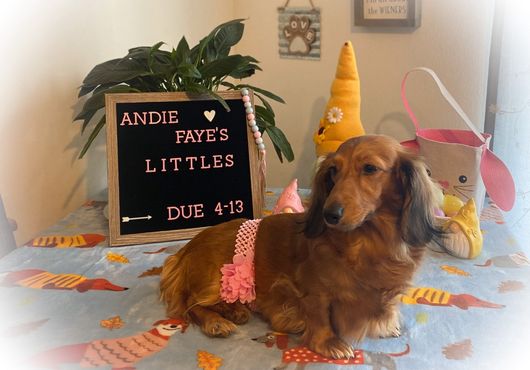 Andie Faye is a female Dachshund. Carefully selected as a great representative of her breed, Tracey decided to make her part of their program. Tracey has passed Good Dog’s screening process, which involved a review of their breeding practices, environment, and the mental and physical health of their dogs.