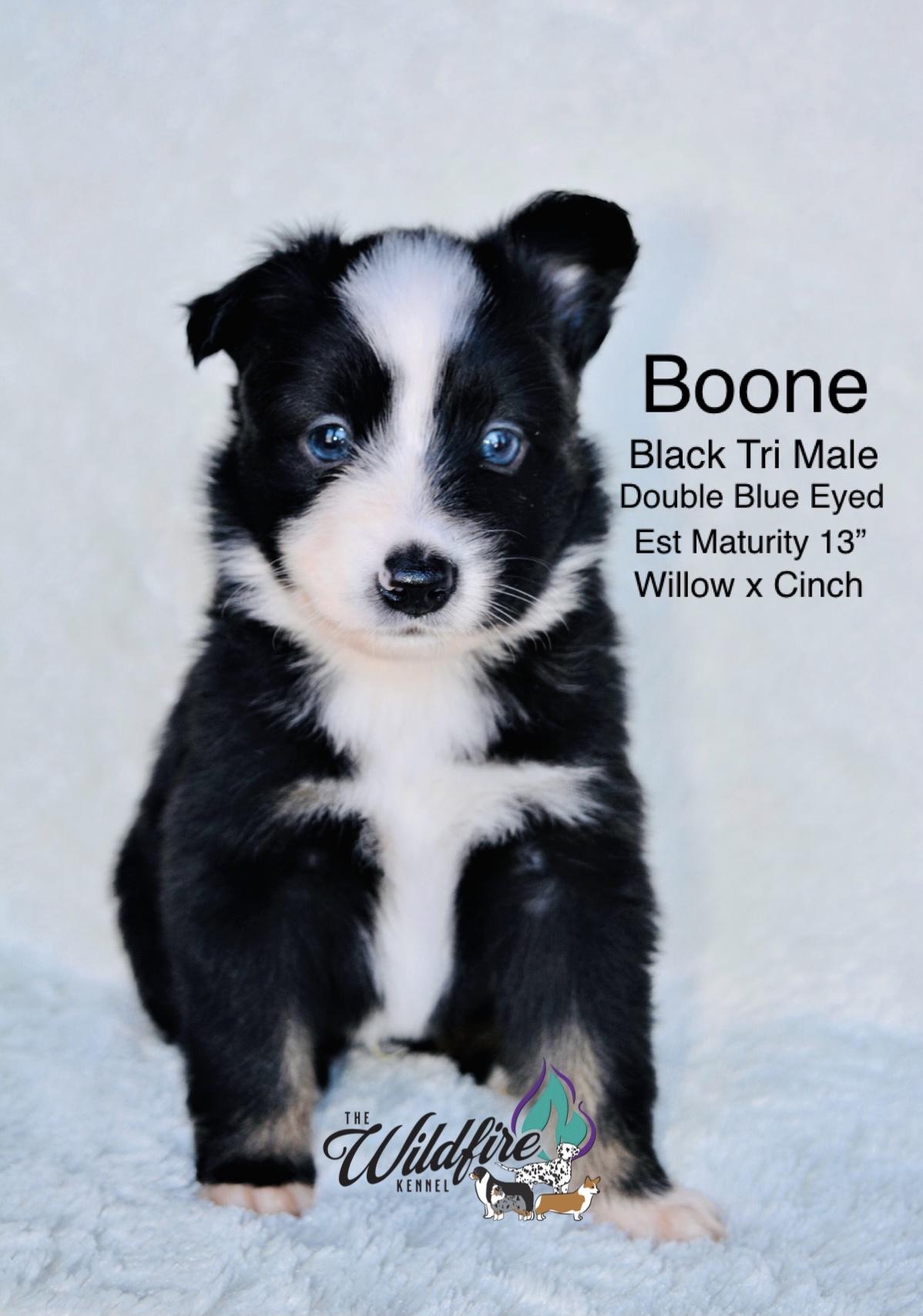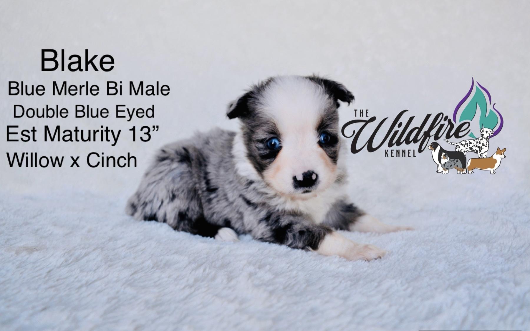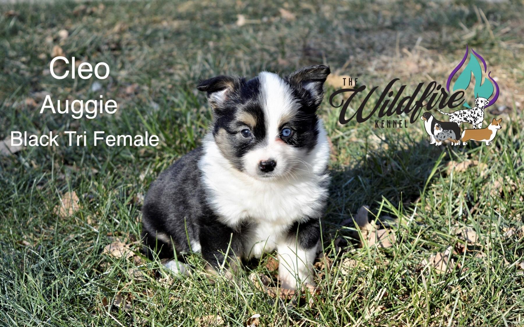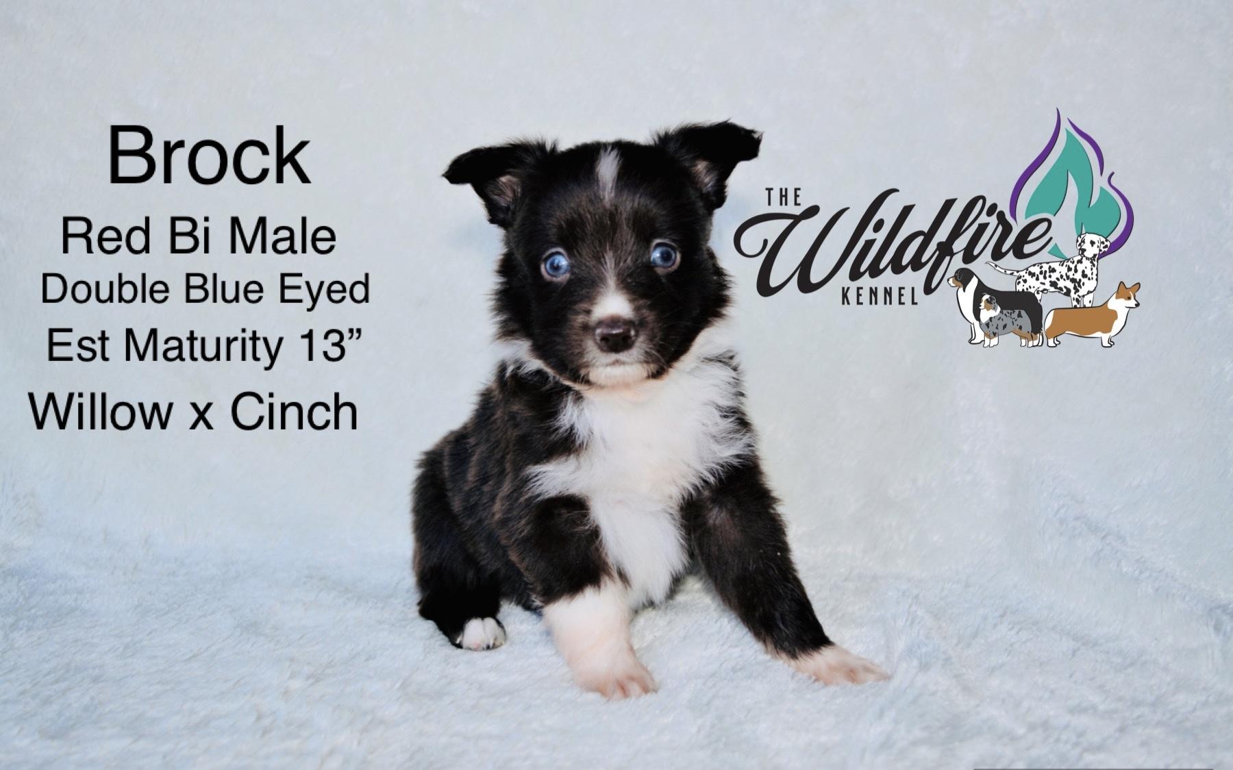 Miniature American Shepherd puppies include black, red merle, and blue merle. Pembroke Welsh Corgi puppies include fawn and sable. Colors will vary depending on the parent dogs.