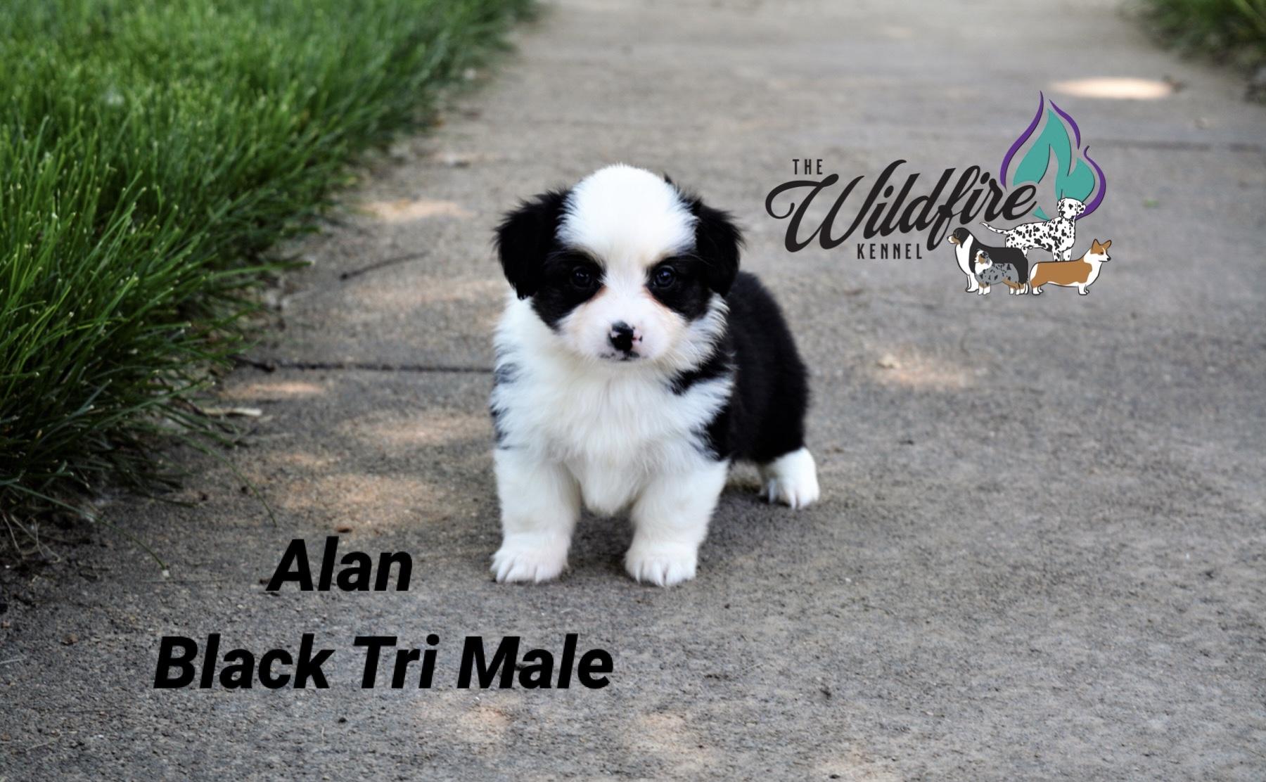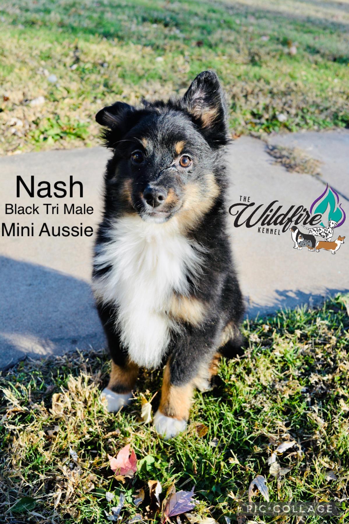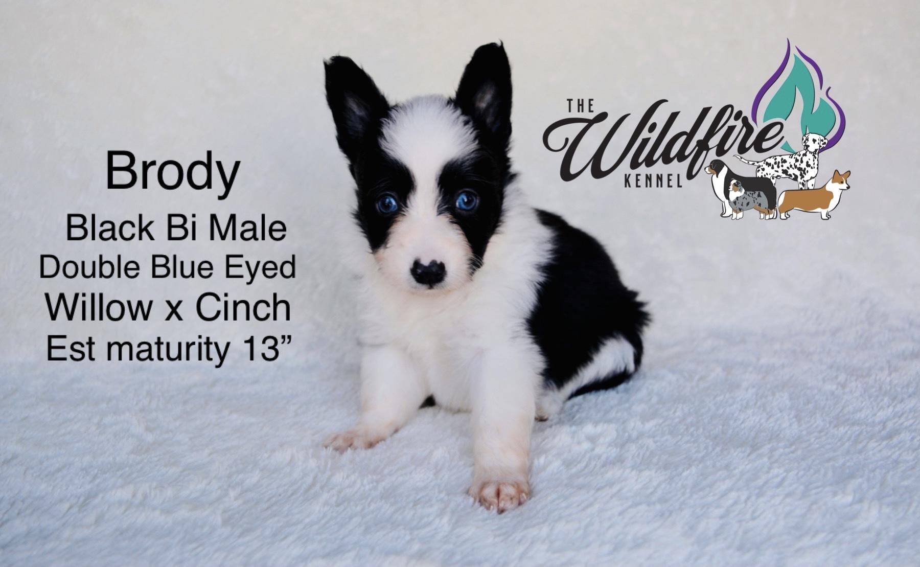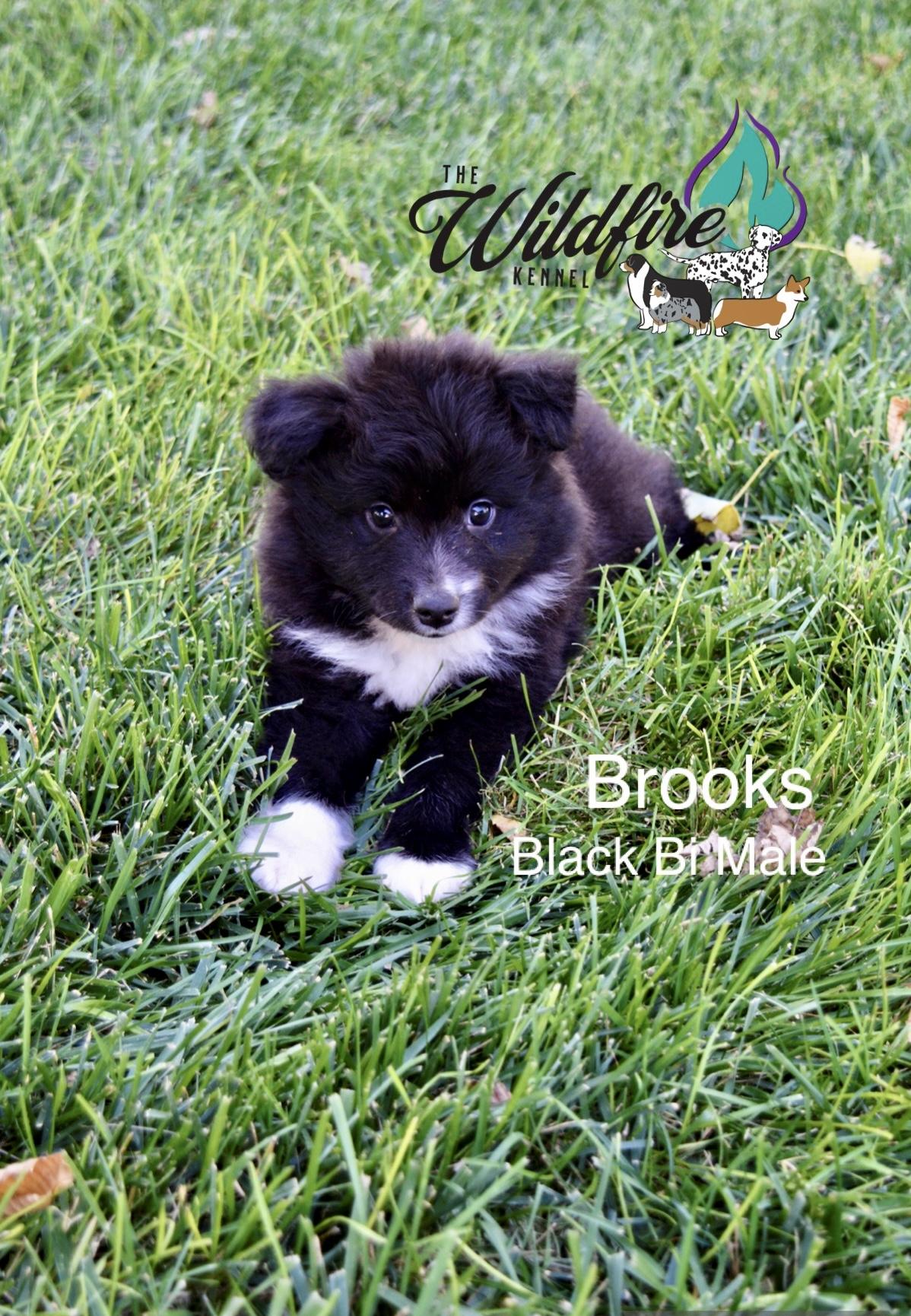 Miniature American Shepherd puppies include black, red merle, and blue merle. Pembroke Welsh Corgi puppies include fawn and sable. Colors will vary depending on the parent dogs.