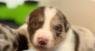 Our puppies include black and white, blue merle, red merle, and red. Colors will vary depending on the parent dogs.