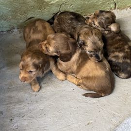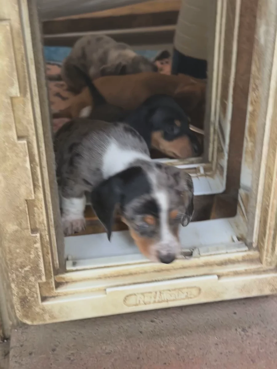 The dachshund puppies did amazing at their vet check today 🥰