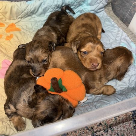 Our Dachshund puppies include smooth and longhaired coat varieties. Coat types may vary depending on the parent dogs.