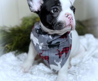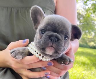 Thelmasbullys Talulah is a blue pied French bulldog. A beautiful girl with a sweet personality. She loves to be outdoors and also just loves to be a snugglebug. She loves all the attention and treats she can get.