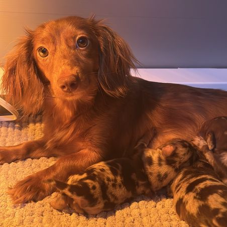 Our Dachshund puppies have longhaired coats. Coat types may vary depending on the parent dogs.