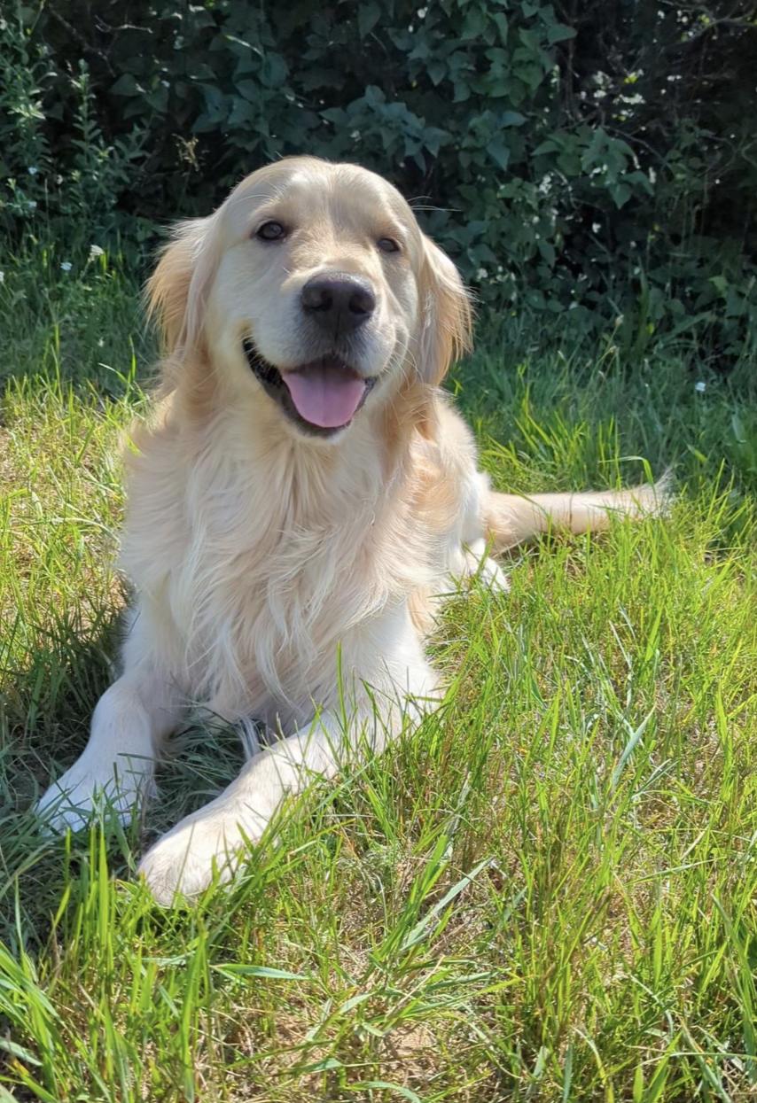 Birdie is a female Golden Retriever. Carefully selected as a great representative of her breed, JACKIE decided to make her part of their program. JACKIE has passed Good Dog’s screening process, which involved a review of their breeding practices, environment, and the mental and physical health of their dogs.