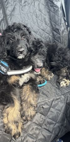 The puppies are 3 months today. Loving their car rides. Went to the vet. UTD on shots and simparica trio. How are these babies still available