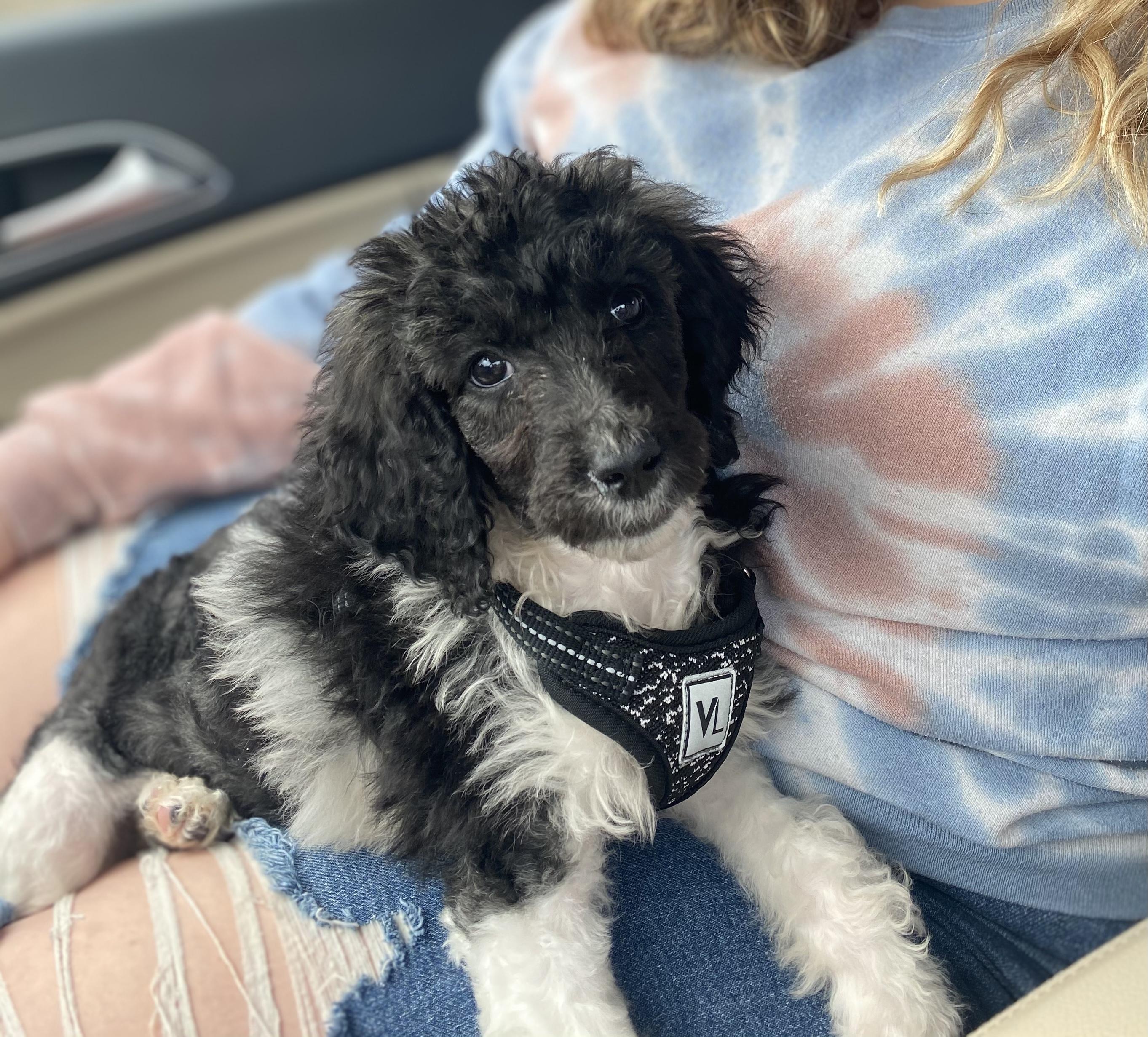Our Aussiedoodle puppies include blue merle, black and white, black tri-color, and red tri-color. Maltipoo puppies include apricot, cream, and red. Colors will vary depending on the parent dogs.