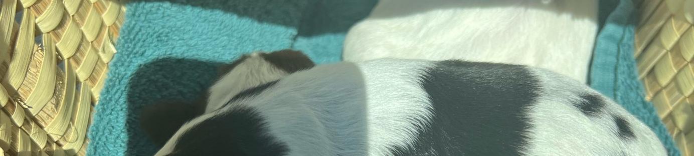 Our puppies include red and white, liver white and tan, liver and white, black white and tan, and black and white. Colors will vary depending on the parent dogs.