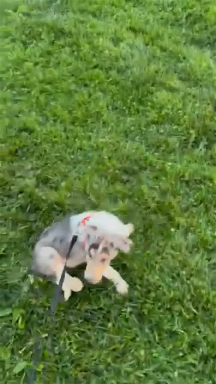 Smart dog! Knew his name at 9 1/2 weeks old! Growing like a weed! Dominique was great to work with! She took excellent care of Prince our puppy! We also made a new friend as well!