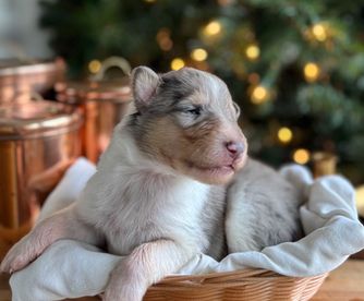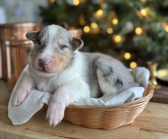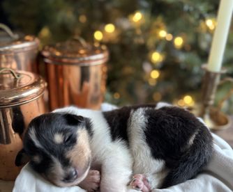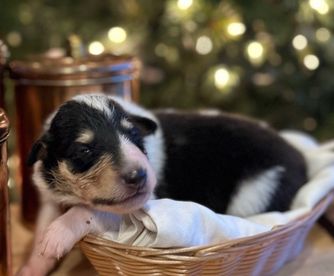 Our puppies include black white and tan and blue merle white and tan. Colors will vary depending on the parent dogs.