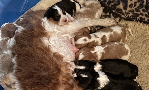Our puppies include blenheim and tri-color. Colors will vary depending on the parent dogs.