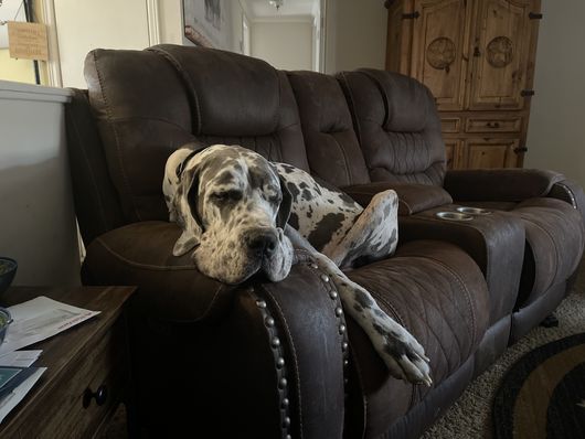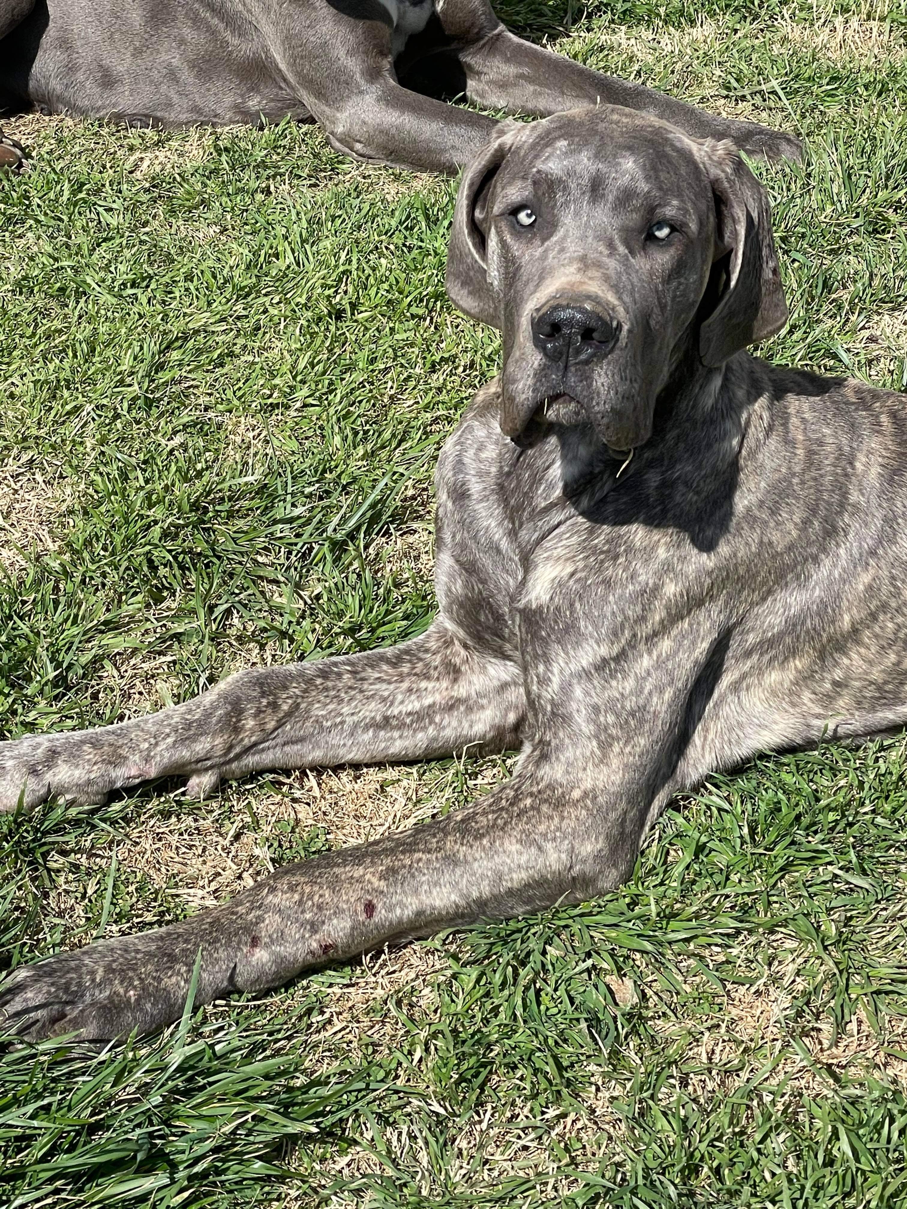 I'm Kim T., the breeder behind Thomas Family Danes located in Sperry, OK. Our dogs are our beloved companions. We care deeply about this breed and are proud to be responsible Great Dane breeders. We are a small enough program that we are able to thoroughly focus on each individual dog and puppy and their needs. We take pride in the time and dedication we give to every litter.