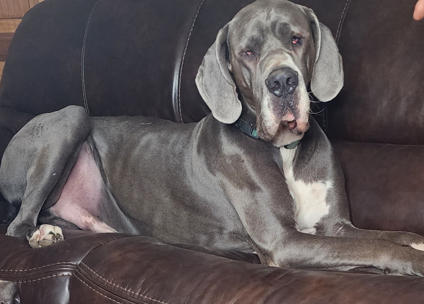 Kash is a male Great Dane. Carefully selected as a great representative of his breed, Kim decided to make him part of their program. Kim has passed Good Dog’s screening process, which involved a review of their breeding practices, environment, and the mental and physical health of their dogs.
