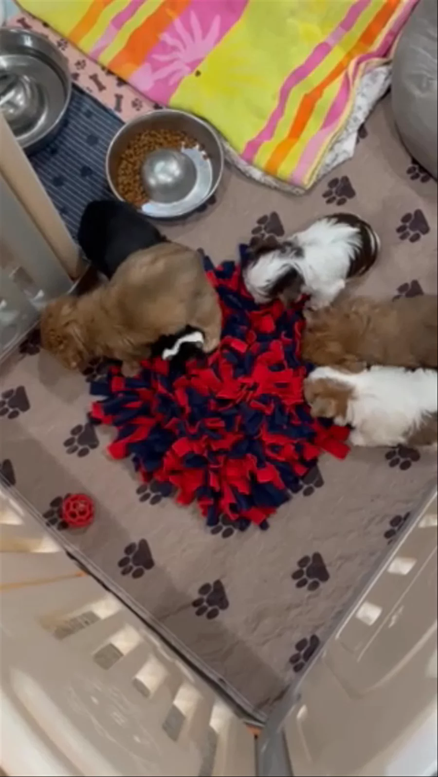 Our puppies include chocolate, tan and white, chocolate and tan, parti, tan, black and tan, and black and gold. Colors will vary depending on the parent dogs.