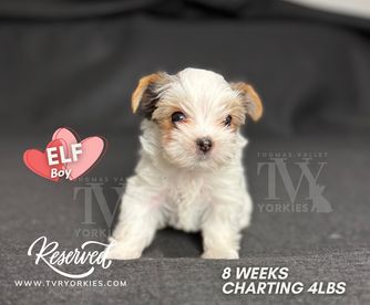 We are very hands on with our breeding program. At Thomas Valley Yorkies, we are involved every step of the way. Our whelping area is set up in our front bedroom. Two weeks before the due date, I stay in the whelping room with the dam. Once puppies are born, I stay in the room for two-four weeks to check on the puppies and mama thru the night. At four weeks, they leave the whelping room and are moved to the living room to start their socialization. We start our puppies on Early Neurological Stimulation (ENS) two days after their tails are docked through day Sixteen (16). We also practice the Puppy Culture Program to give our "littles" every opportunity for the best start in their new, young lives.