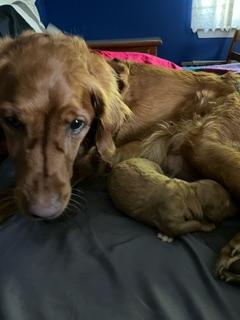 I'm Katherine W., the breeder behind Thornfield Farm Goldens located in Groton, NY. When I bring a litter of puppies into the world, I take that responsibility seriously. I do everything I can to make sure the pups get the best start possible, starting with responsible breeding. Any pup or dog from my program is a part of my family. I have a home for them here if they need it.