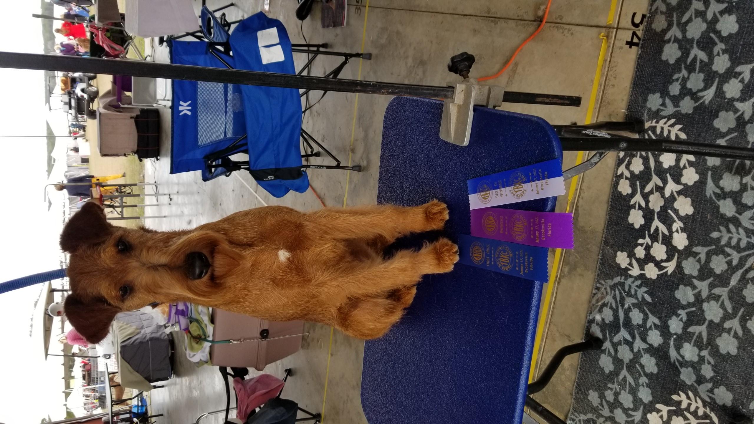 Cedar is a female Irish Terrier. Carefully selected as a great representative of her breed, Lynn decided to make her part of their program. Lynn has passed Good Dog’s screening process, which involved a review of their breeding practices, environment, and the mental and physical health of their dogs.