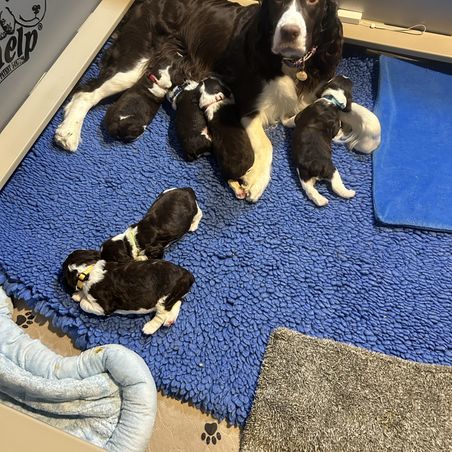 Our puppies include liver and white and black and white. Colors will vary depending on the parent dogs.