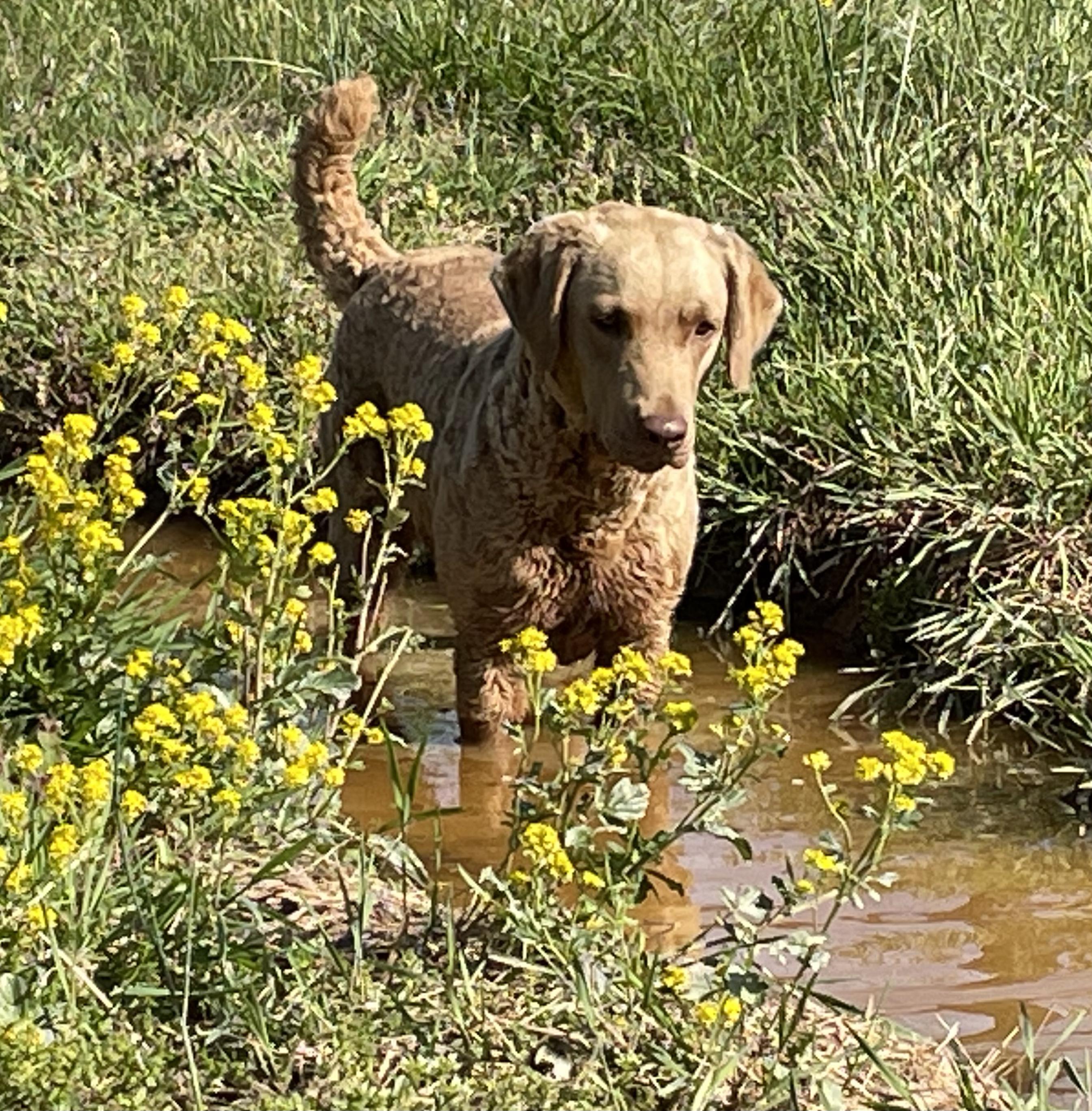 Winter is a female Chesapeake Bay Retriever. Carefully selected as a great representative of her breed, Maria decided to make her part of their program. Maria has passed Good Dog’s screening process, which involved a review of their breeding practices, environment, and the mental and physical health of their dogs.