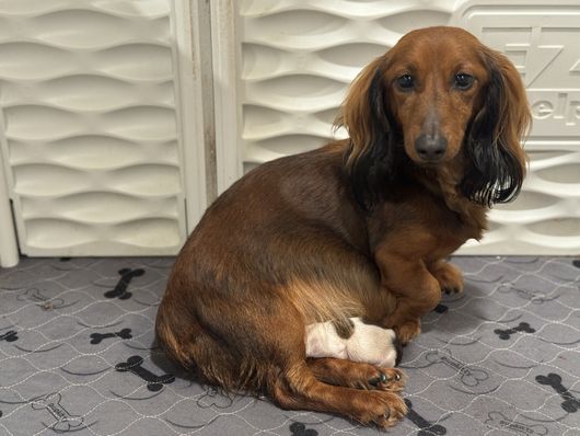Bea is a female Dachshund. Carefully selected as a great representative of her breed, Kaela decided to make her part of their program. Kaela has passed Good Dog’s screening process, which involved a review of their breeding practices, environment, and the mental and physical health of their dogs.
