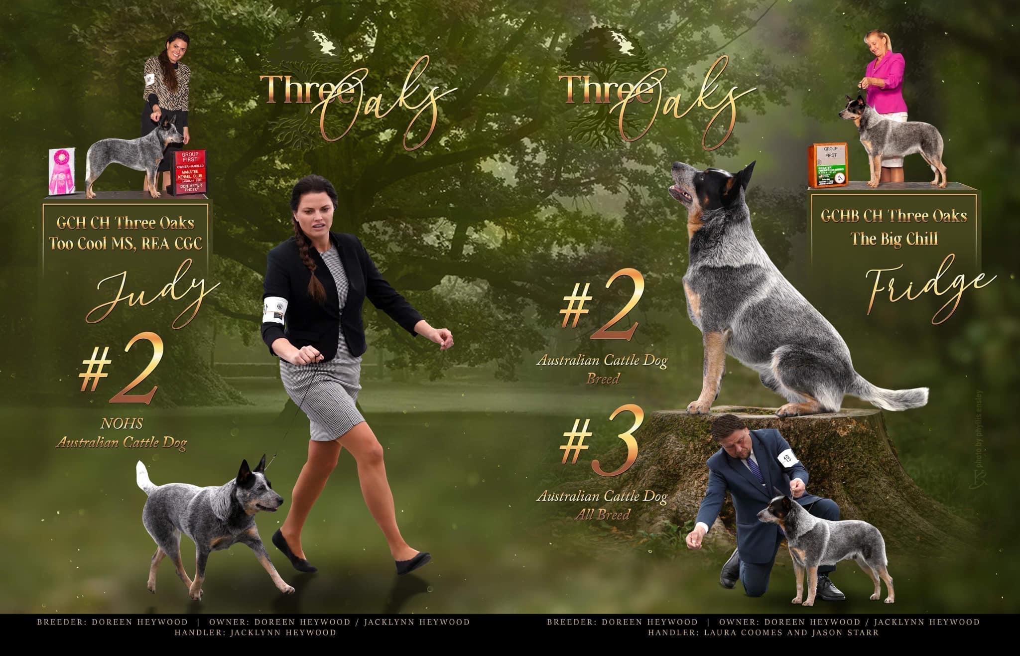 I'm Doreen H., the breeder behind Three Oaks Australian Cattledogs located in Ocala, FL. I breed with the best dogs I can find. My dogs are bred for performance and conformation. I am a preservation breeder. I proudly take on the responsibility of doing my part to better the breed and give each of my dogs and puppies a good life. I take pride in the dogs I produce and love sharing them with others.