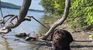 Rousey loves to retrieve and makes a big splash when she enters the water! She is a big snuggly girl, gets along well with other dogs, and adores children!