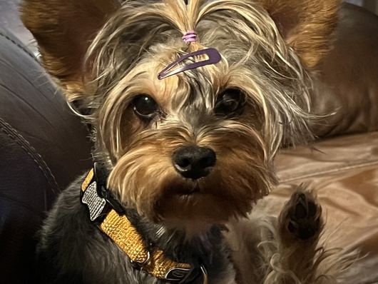Luna is a standard yorkie weighing just over 8lbs. She has a wonderful temperament full of love and kisses.