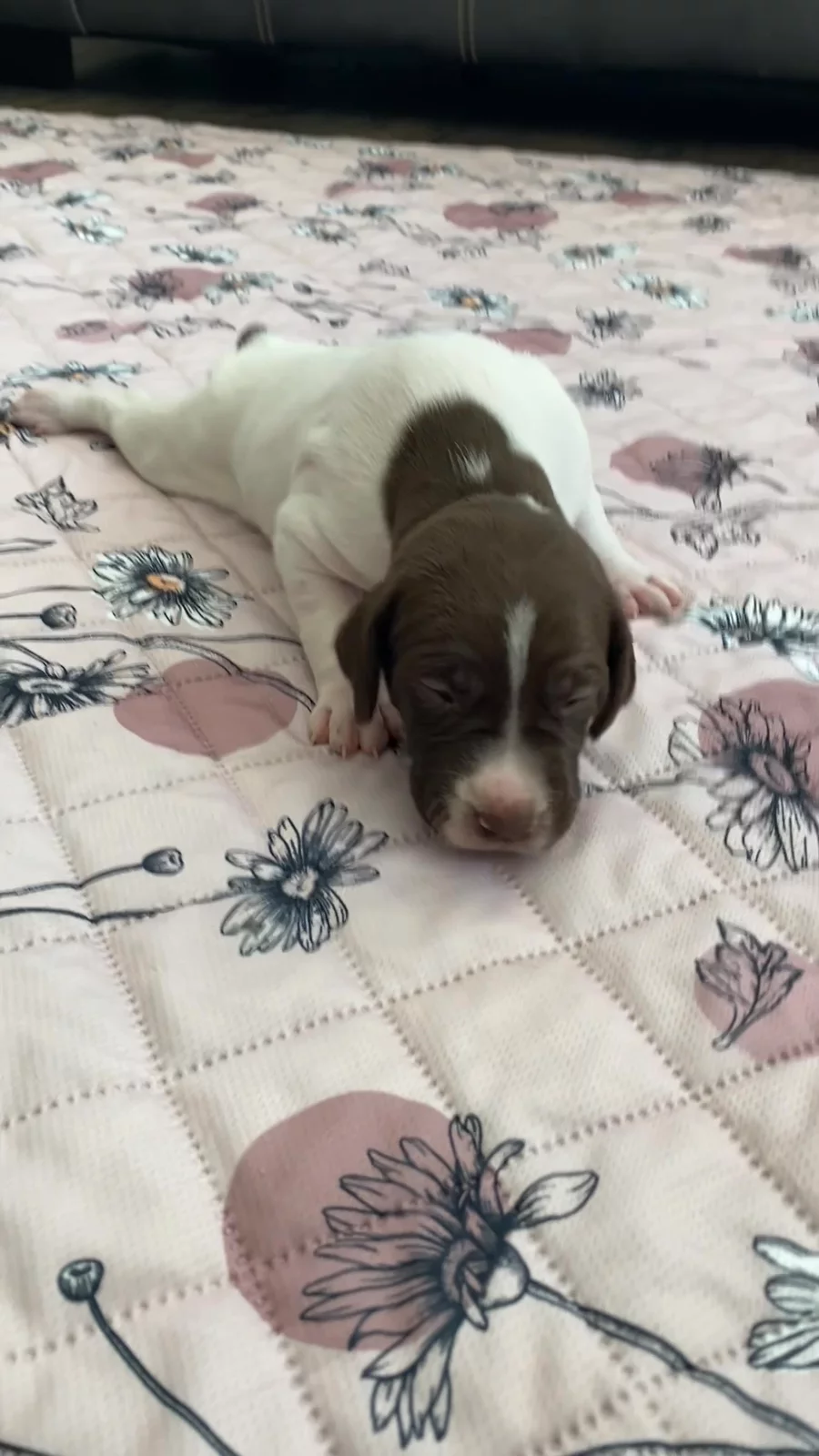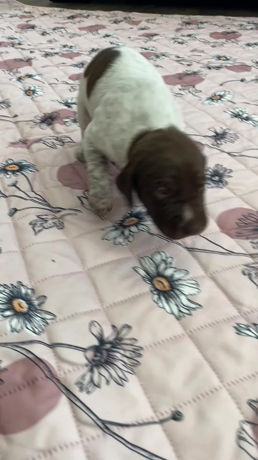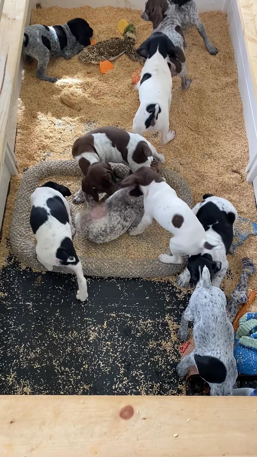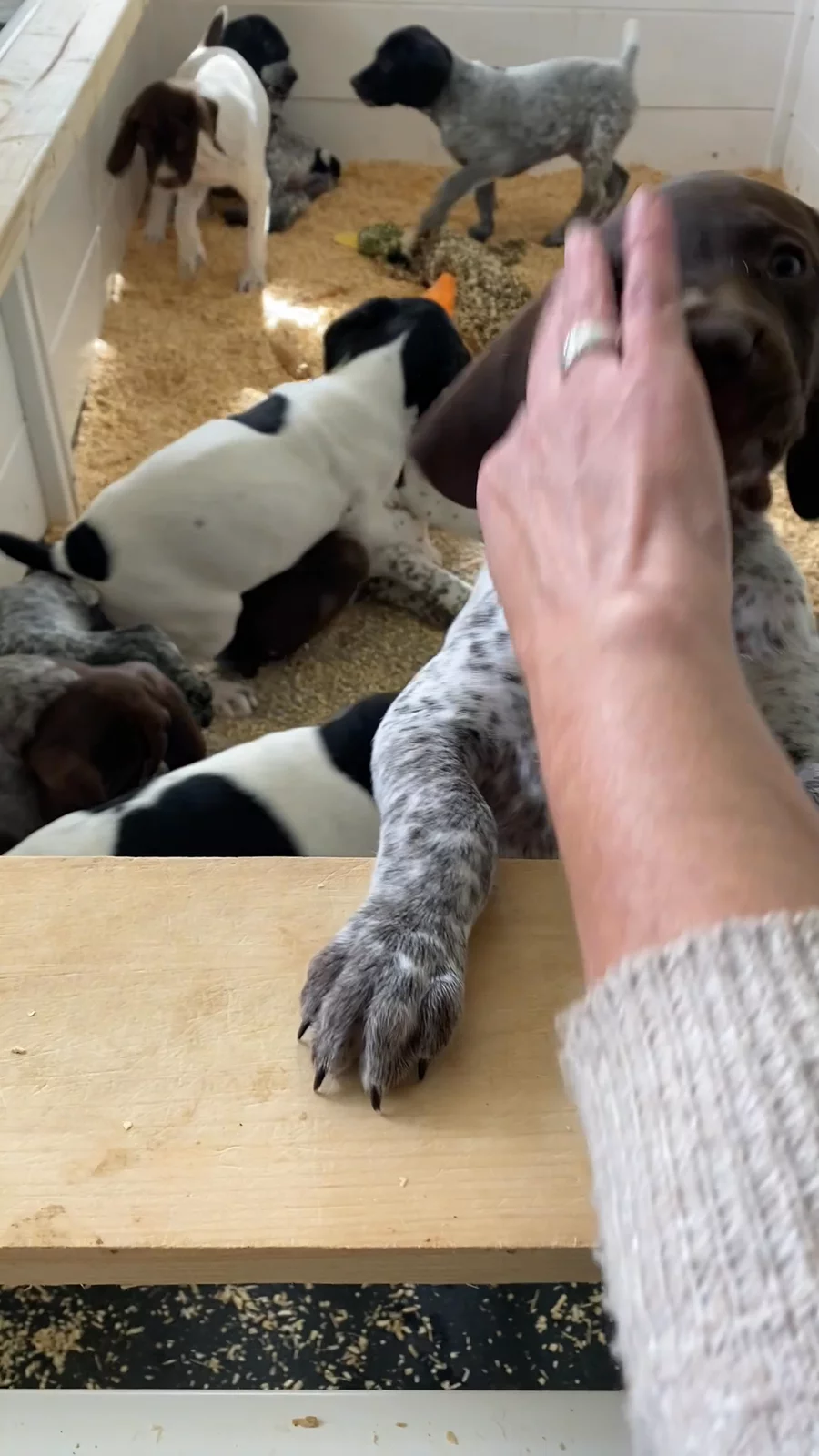 Murphy is such an affectionate girl. She loves to snuggle, go for full speed runs through the mountains, and bird hunt. She does an excellent job pointing the way. She is extremely athletic and versatile in the field, while being calm and obedient in the house. She is such a sweet girl who loves her family and has proven to be a good mama as well. He puppies are precious!