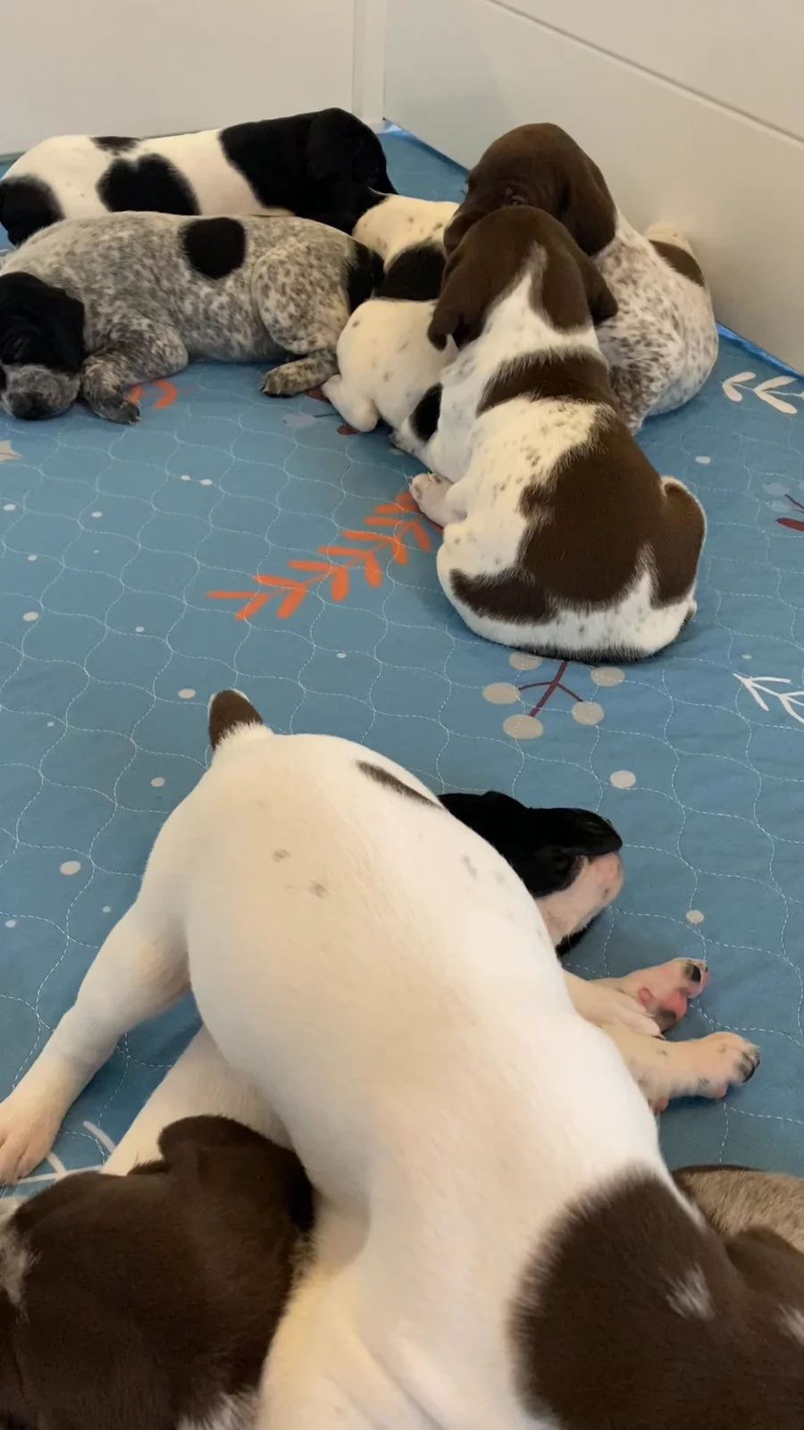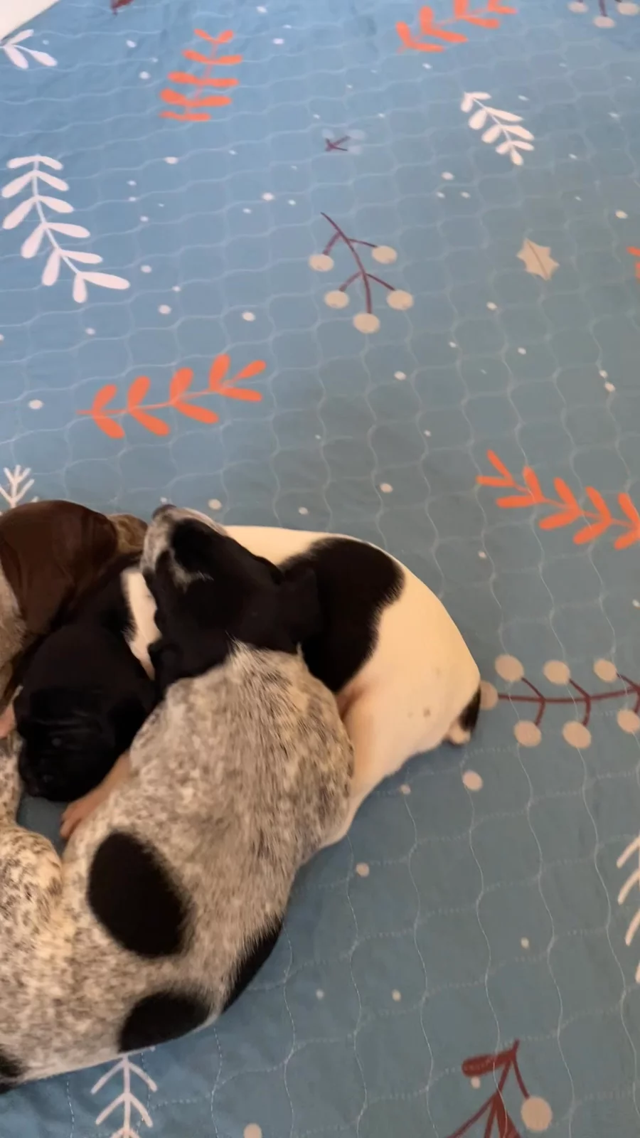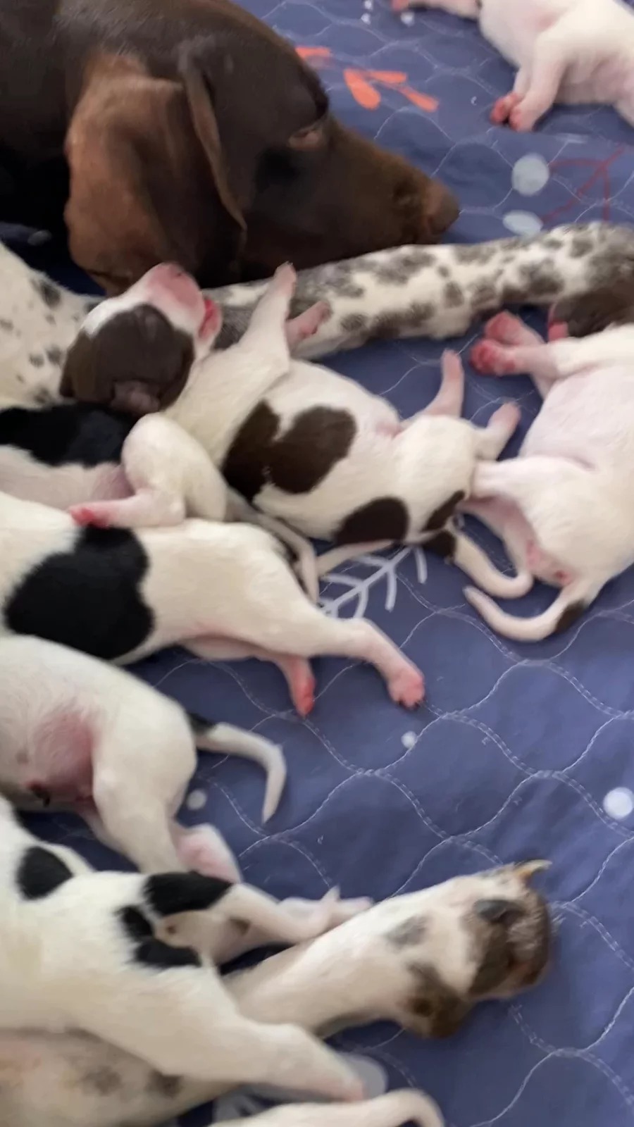 One week old today. The little dumplings are getting their spots & chubby tummies. Just eating, sleeping, & snuggling. 🐾