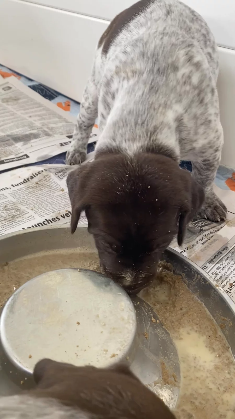 The babies finally got to dive into puppy food. I think it’s safe to say they like it. 🐾