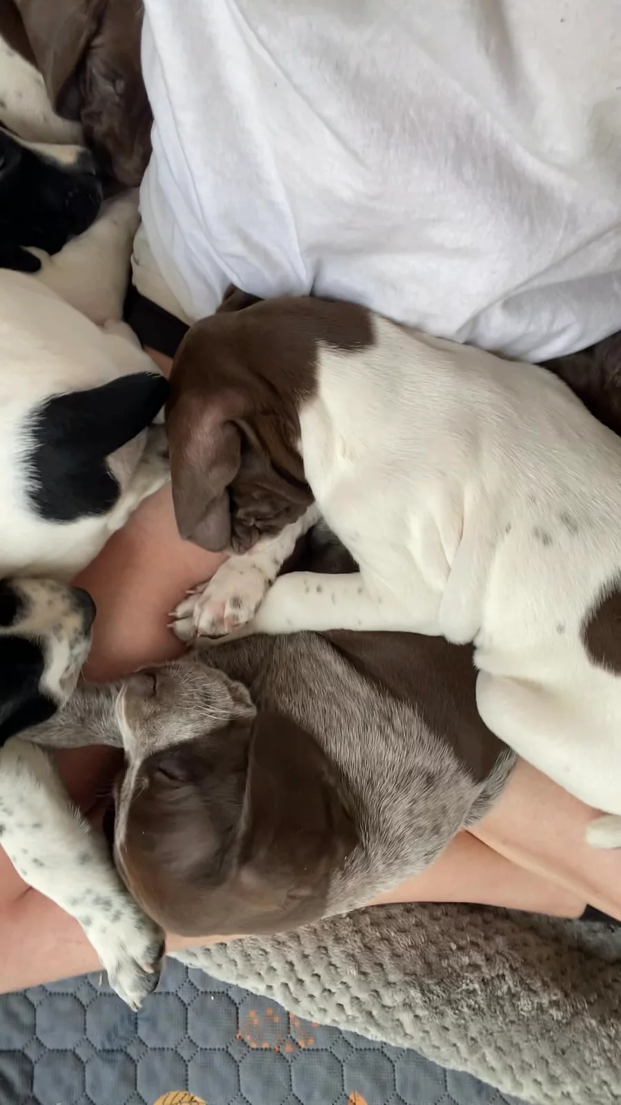 We were blessed with beautiful weather for a few days, and the pups have loved being outside! Another good vet checkup this week. Made the switch to dry food. They are growing, running, and romping! As you can see, they want to be as close to you as possible. So get ready for your snuggly velcro baby, because that doesn’t go away no matter how big they get! 🐾 Pics & videos here, plus more in their individual listings.