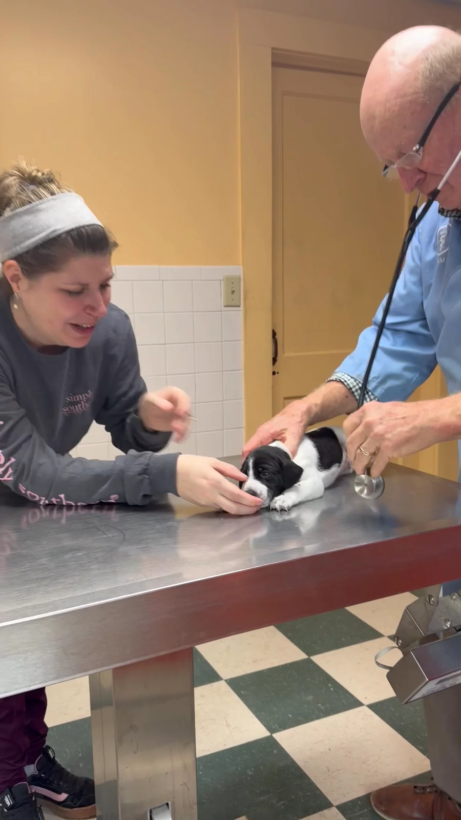 The puppies are growing and changing so fast! They are all walking well, and they can see and hear now. They had a great vet check up yesterday! And, as you can see, the receptionist was in love. 🐾