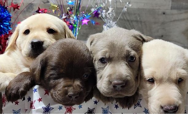 Our puppies include silver, charcoal, yellow, black, chocolate, and champagne. Colors will vary depending on the parent dogs.