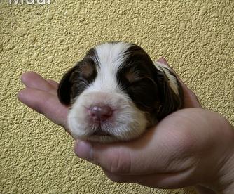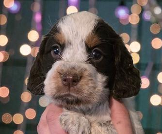 I'm Heather R., the breeder behind Thunderbird Springers located in Florida. Our puppies are raised indoors, under constant care in a designated nursery in our house. We employ Early Neurological Stimulation, which is backed by scientific research, to promote stress tolerance and long term well-being. Deworming takes place bi-weekly at 2, 4, 6, and 8 weeks. Neopar is given at 4 and 6 weeks. The puppies have a thorough exam at 8 weeks where they are evaluated, vaccinated, and given their health certificates. We microchip with Fi Nano which has a Life time membership. There is zero annual fees to keep your information in the database. Genetic health testing of both Parents ensures a health lineage, backed by a 2 year Genetic guarantee. Both parents have exceptional behavior and show easy trainability and an eagerness to please. Puppy training commences immediately, focusing on basic commands, socialization, potty training and kennel training. Our puppies are limited AKC registration unless discussed otherwise.