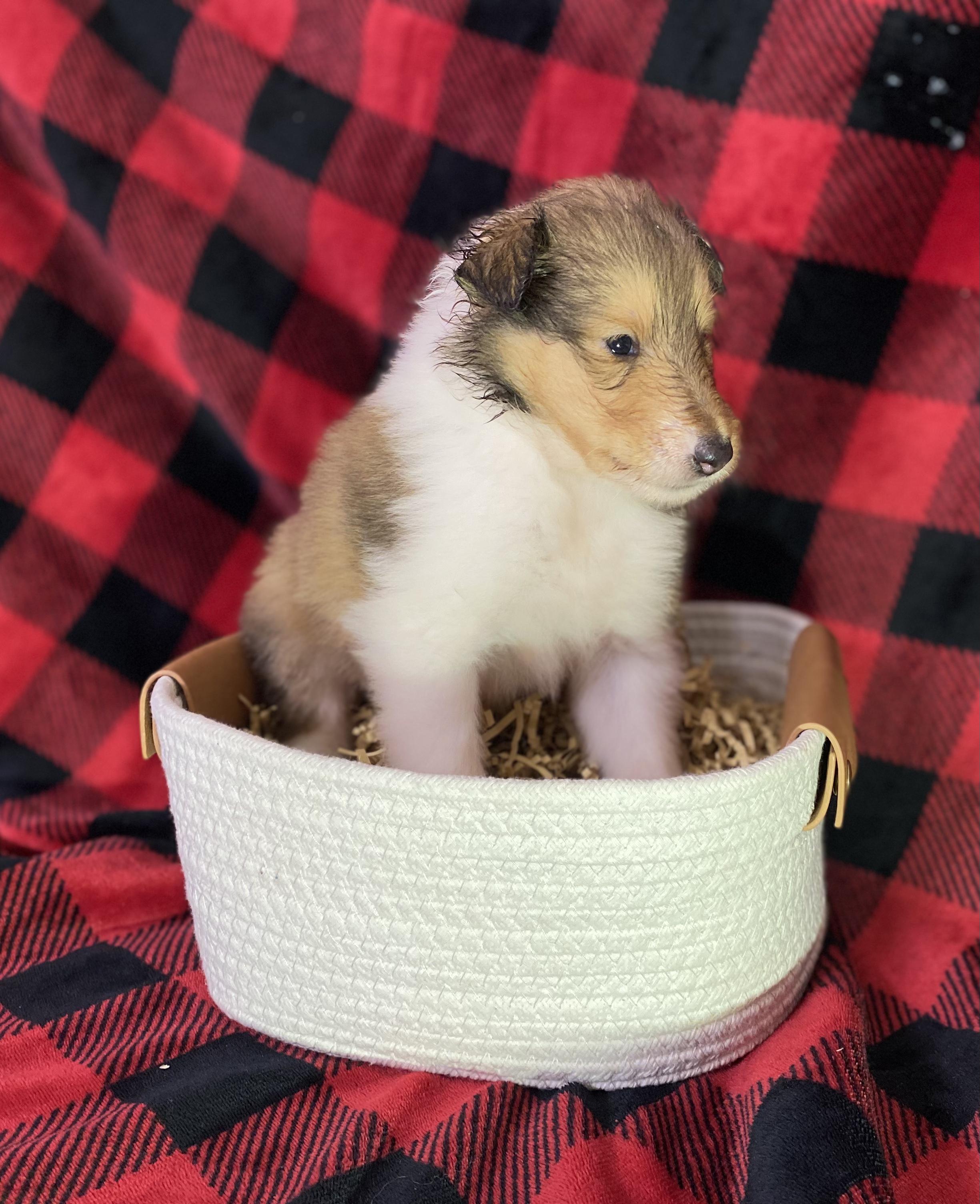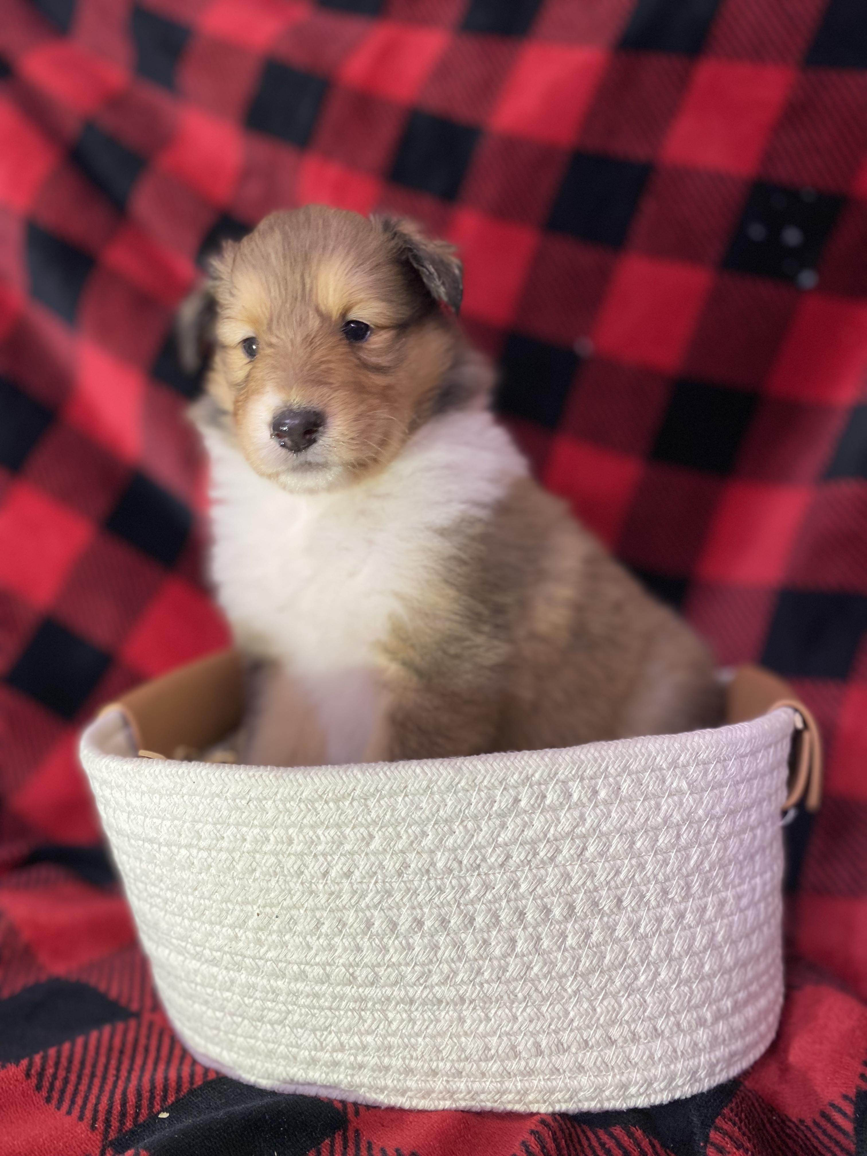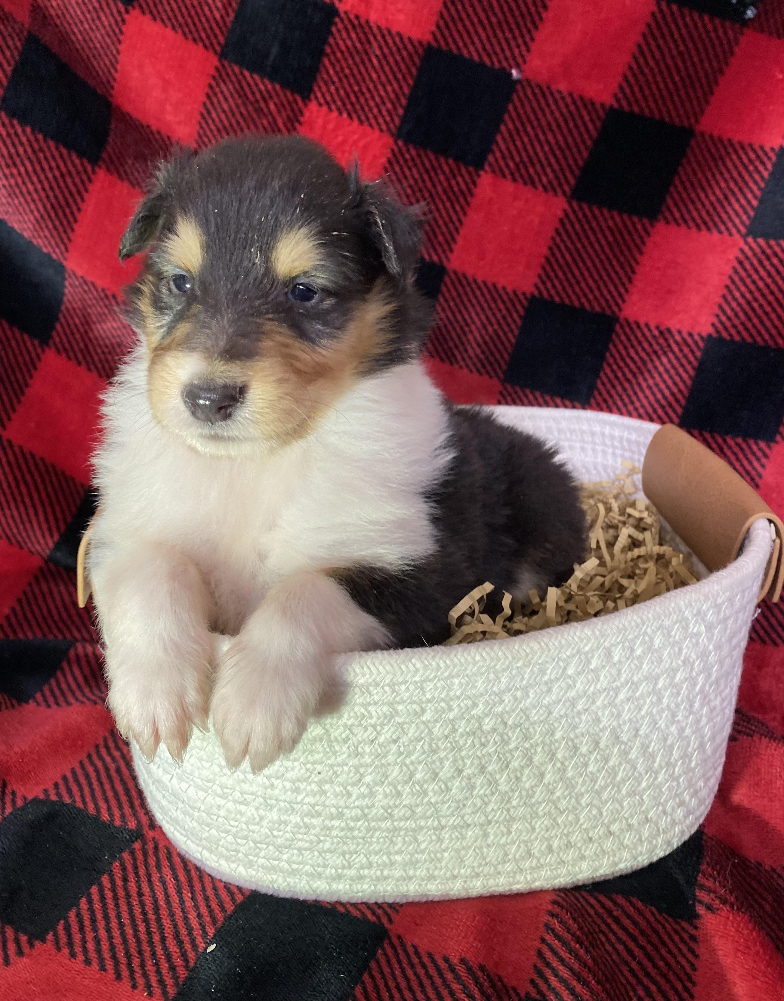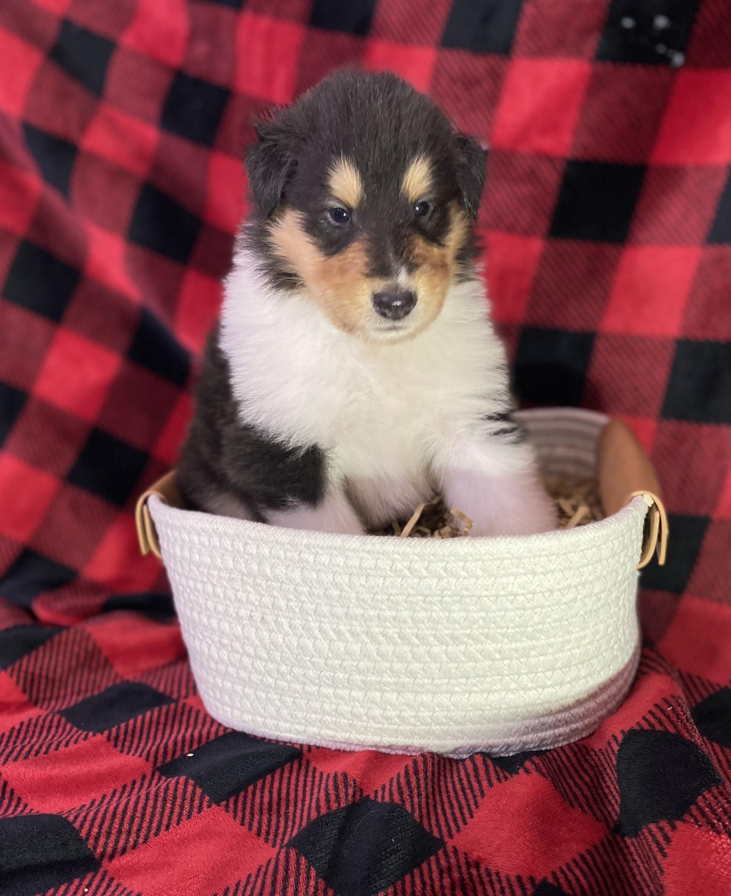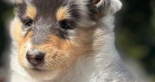 Our puppies include sable merle and white, sable merle, sable and white, sable, blue merle white and tan, blue merle and white, black white and tan, blue merle, and white. Colors will vary depending on the parent dogs.