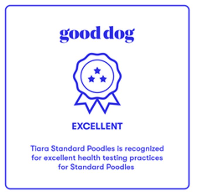 Tiara Standard Poodles reports to performing the health tests below on their breeding dogs. Ask your breeder about the tests performed on the parents of your litter. Learn more about health testing for Standard Poodles.