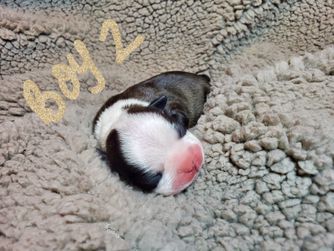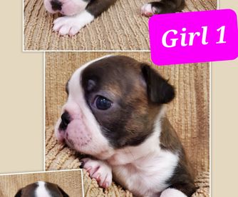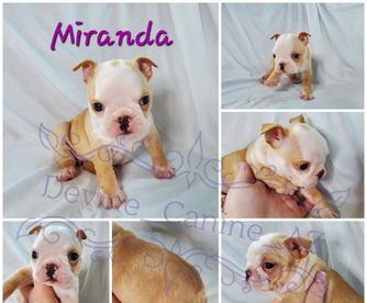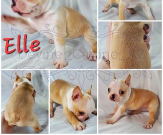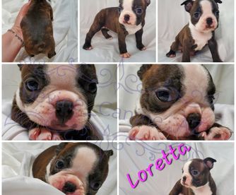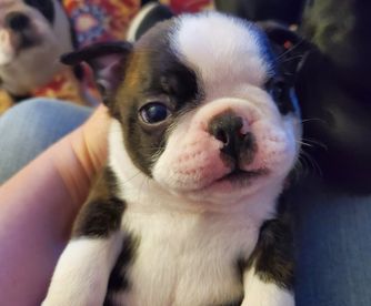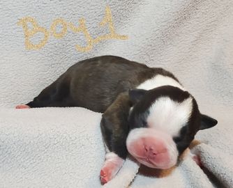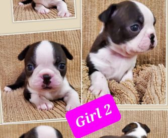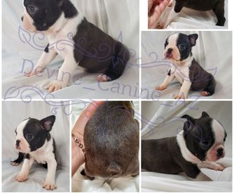 Our French Bulldog puppies are cream. Boston Terrier puppies include seal and white, seal brindle and white, brindle and white, black brindle and white, and black and white. Colors will vary depending on the parent dogs.