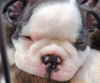 Our Boston Terrier puppies include seal and white, seal brindle and white, brindle and white, black brindle and white, and black and white. French Bulldog puppies are cream. Colors will vary depending on the parent dogs.