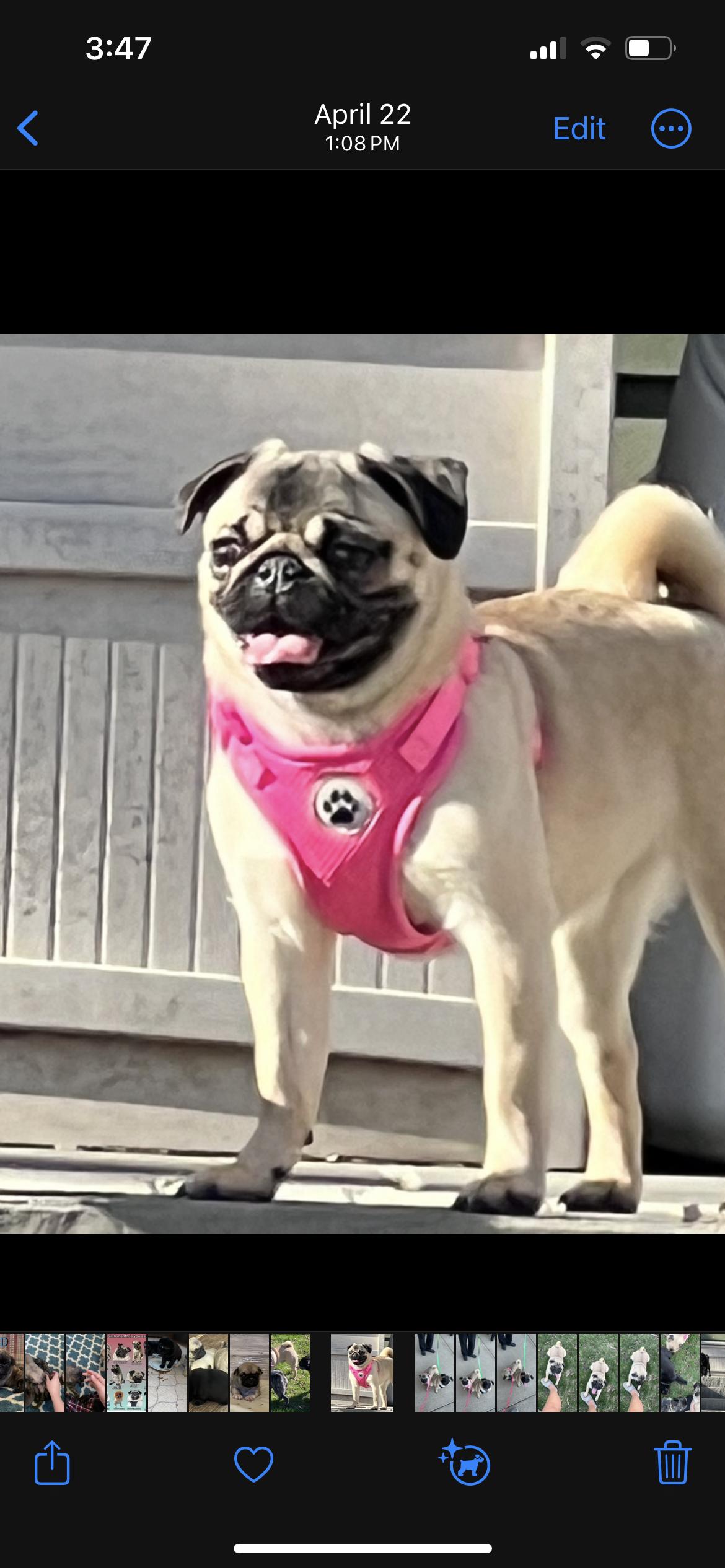 Xochi is a female Pug. Carefully selected as a great representative of her breed, buffy decided to make her part of their program. buffy has passed Good Dog’s screening process, which involved a review of their breeding practices, environment, and the mental and physical health of their dogs.