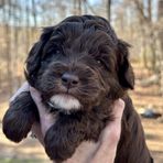 Sadie, our beloved pet, is the foundation of our breeding program. She is where it all began for Tillery Labradoodles in 2015. We are so thankful for this beautiful chocolate girl and the opportunities she has given us! Stunning in every way, Sadie has beautiful loose and curly fleece, is non-shedding, and a hypoallergenic coat.