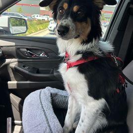 Ember is a female Australian Shepherd. Carefully selected as a great representative of her breed, Jenny decided to make her part of their program. Jenny has passed Good Dog’s screening process, which involved a review of their breeding practices, environment, and the mental and physical health of their dogs.