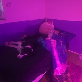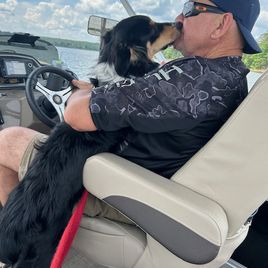 Full of life and loves her people! Loves to snuggle. Loves to ride in a vehicle or a boat. Loves to go to the lake and play in the water. Shes a fast learner. Gets along with all animals on the farm. Her sire was registered, but her dam was not, therefore she is not registered, but wouldn't trade her for anything!