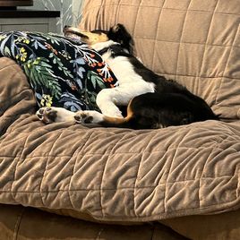 Caw is one beautiful boy! Though he can be a goofball. AKC Registered. Genetic testing with Gensol Diagnostics and all clear. He loves playing Frisbee, and ball, with or with out you. He has a tendency of throwing them up and catching them on his own at times. He lays at my feet or close by me wherever I am unless we are outside, then he has to get all his playing and sight seeing done. He loves the water, you can't water the flowers without watering him first, lol. He is a happy happy dog! Caw loves his pups as well..He wants so bad to get to them so he can lick them and boop them with his nose. He is for sure a character.