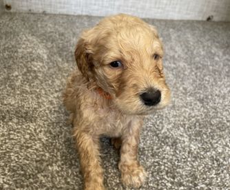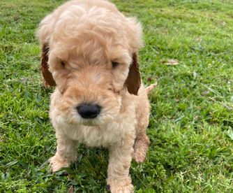 F1 mini Goldendoodle Curly Poodle hair, very friendly and outgoing