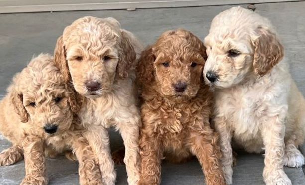 Our Poodle puppies include black, blue, and red. Goldendoodle puppies include cream, apricot, red, chocolate, black, and phantom. Colors will vary depending on the parent dogs.