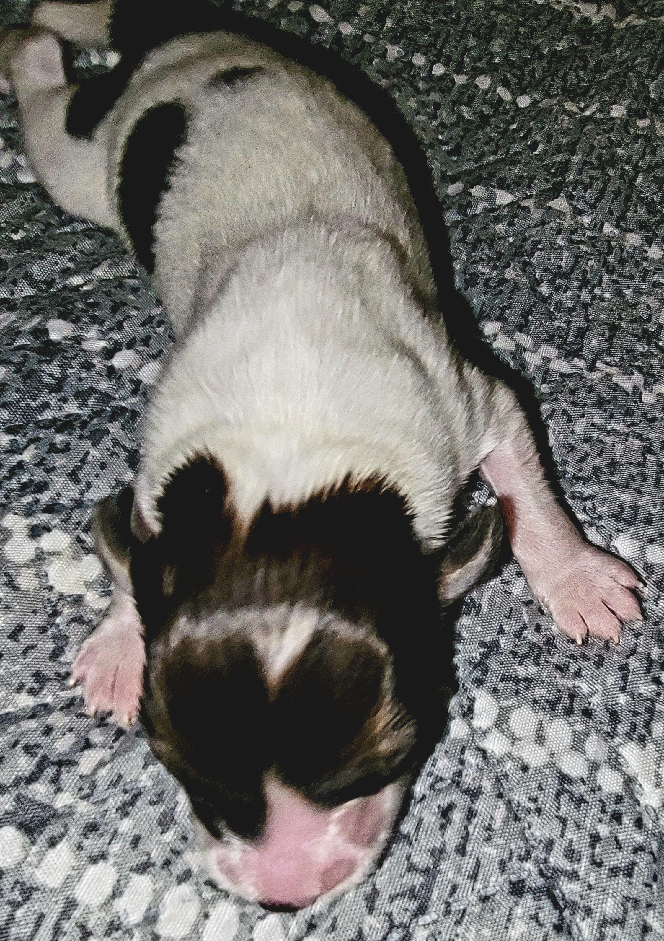 Our puppies include black brown and white, white and red, red white and sable, and white and silver. Colors will vary depending on the parent dogs.